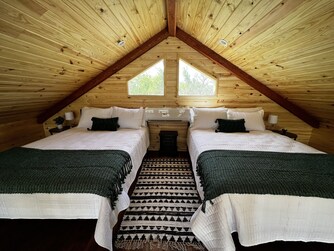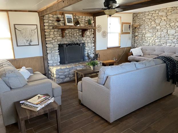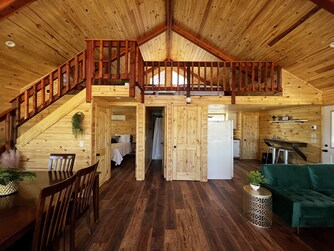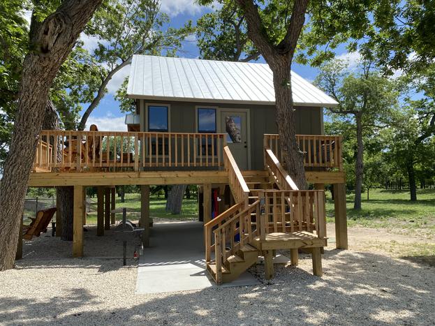 The Treehouse has spectacular views of the Nueces River and hills. The sunrises are amazing! The Treehouse offers an abundance of outdoor living space. It has a large deck with oversized chairs to enjoy the view and the breeze, while the underneath area which boost a full bath, bar, kitchenette, swing, and hammock all for your enjoyment. Off to the side, you will find a BBQ pit and a fire pit area with chairs for cooking s'mores and to cozy up to on those cool Texas nights. It also has an air conditioned playhouse for the little ones. This Treehouse has a master bedroom with a queen bed, a loft with two queen beds, a full bath, kitchen, and living area. It has lots of glass so you can enjoy the view inside as well as out! This cabin has everything you need to enjoy your stay. The river is great for swimming fishing, snorkeling, or kayaking. Bird watching, biking, hiking, and hunting are very popular in this area. Watching wildlife in the mornings or star gazing at night this place won't disappoint.